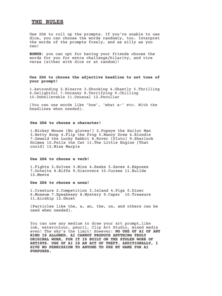 | Tags | analog, artgame, Cartoon, Comics, Drawing, No AI, party-game, public-domain, Tabletop role-playing game |